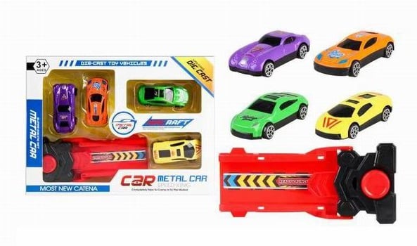 Innehåller fyra färgglada metallbilar och en kraftfull avfyrningsramp för häftiga racerlekar.