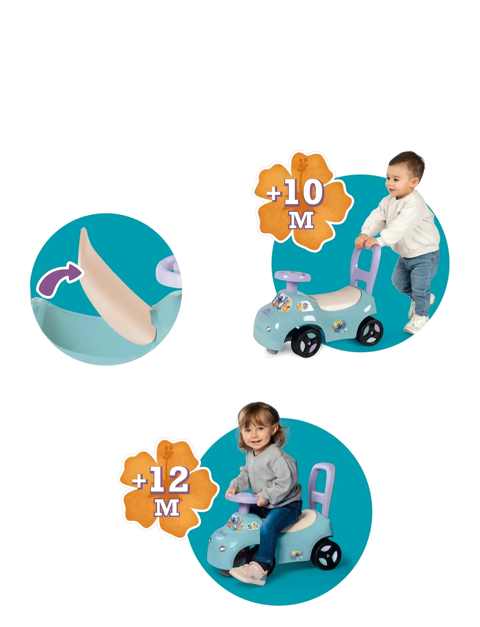 Den här charmiga Disney Stitch Lära-gå-bilen är designad för att uppmuntra barnets balans, koordination och motorik på ett lekfullt sätt.