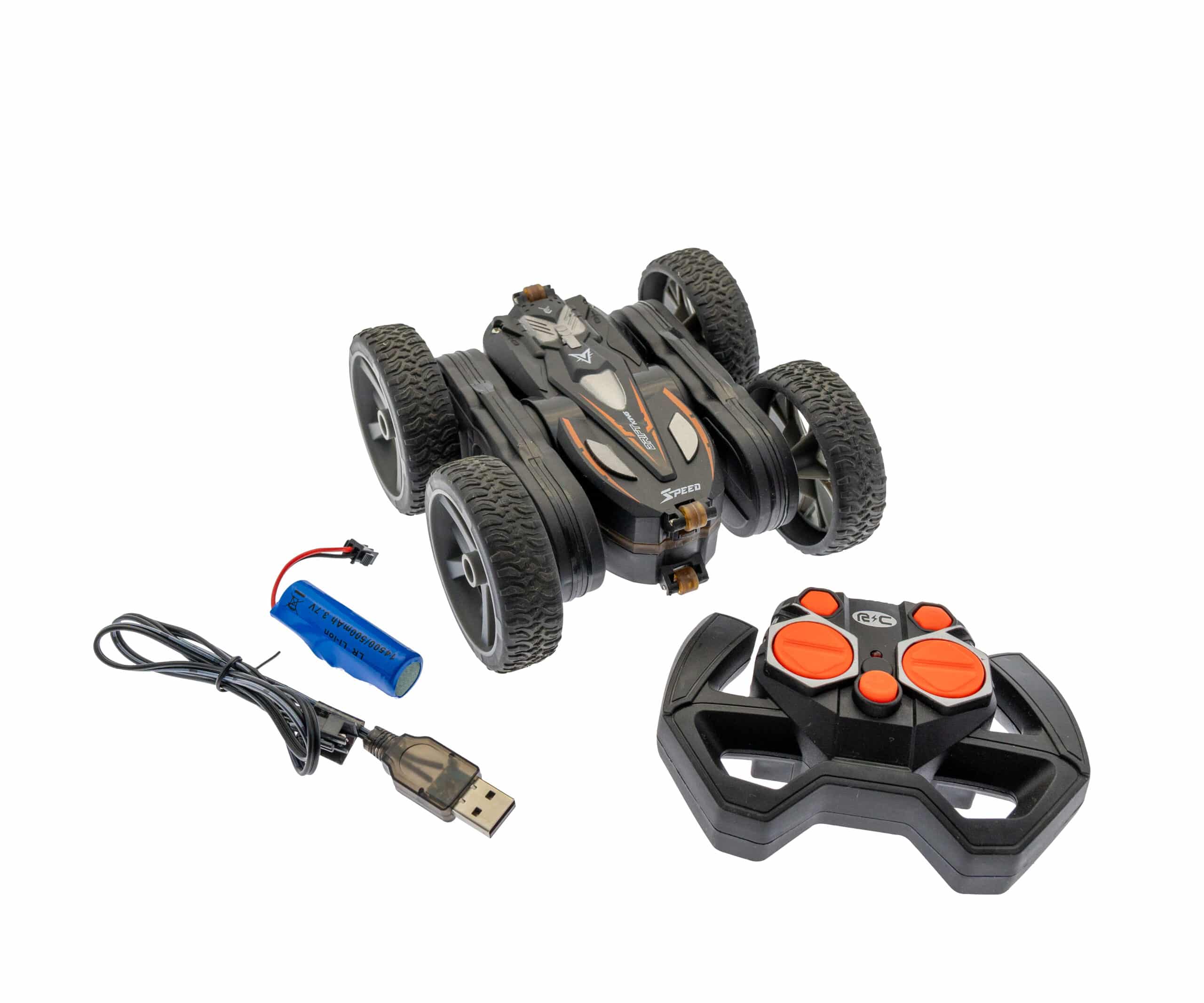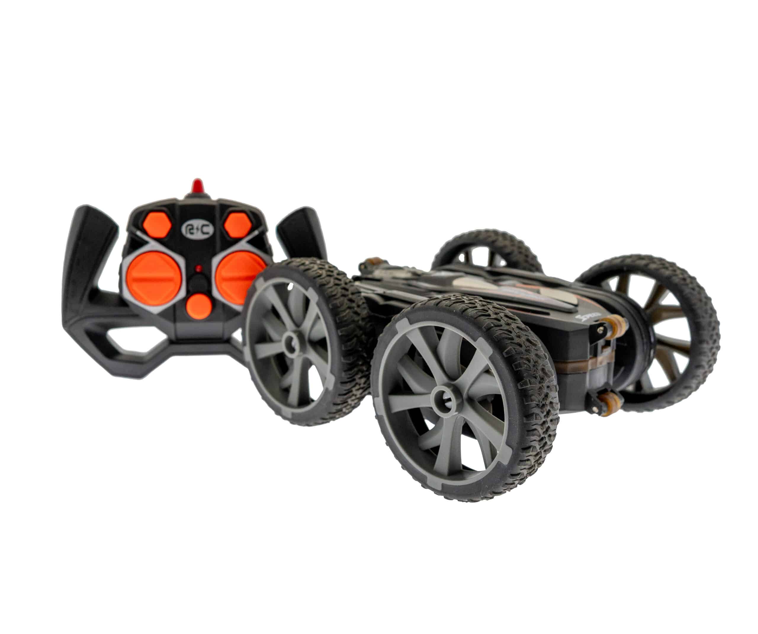 Med sin flexibla hjulkonstruktion kan bilen köra, snurra runt och loopa – en riktig trickbil som ger massor av skratt och spänning.