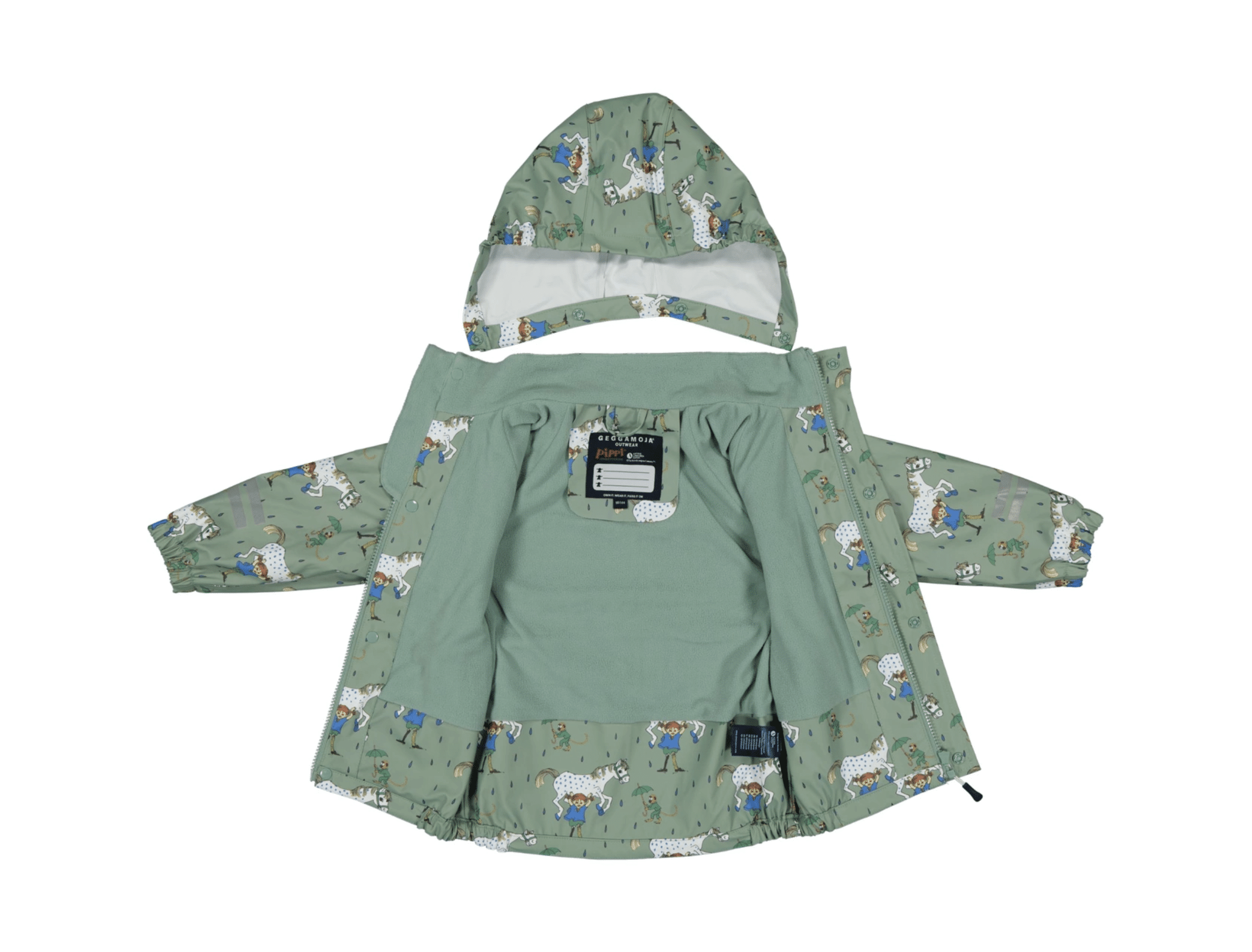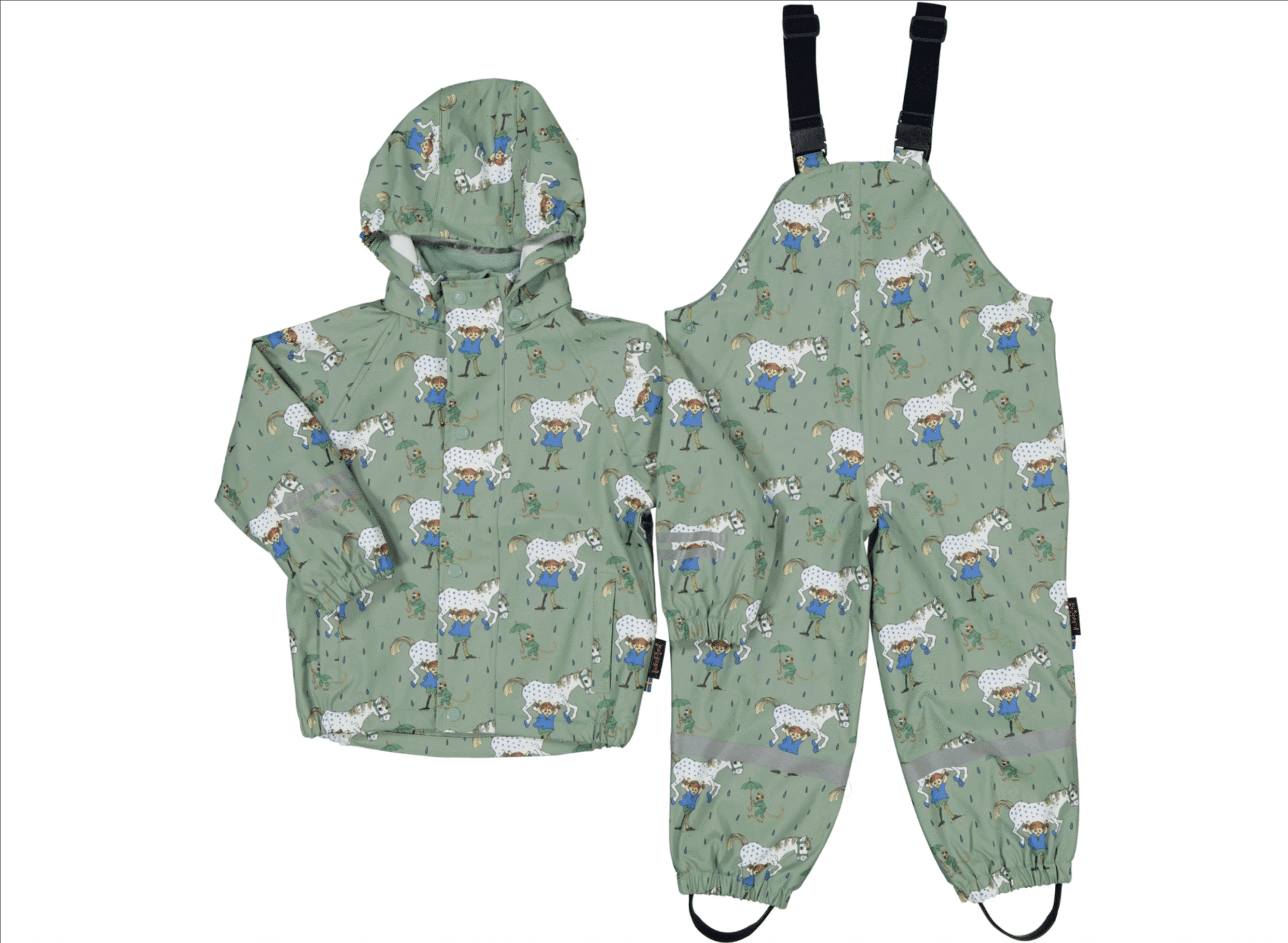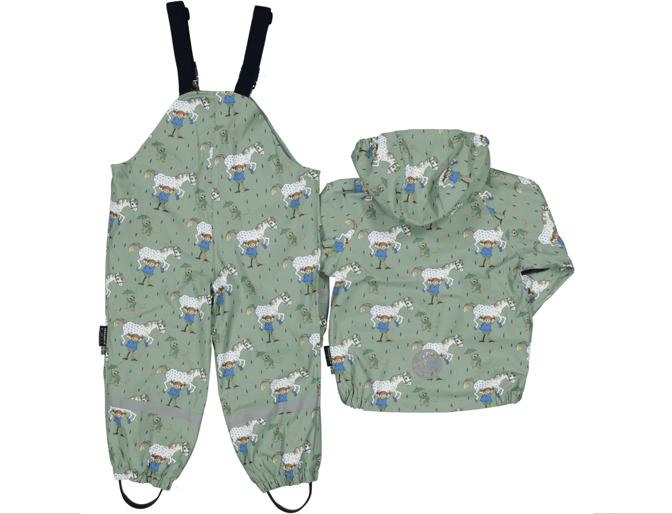 Regn är inget hinder för lek när du har rätt kläder! Det här Pippi-regnsetet som är fleecefodrat håller små äventyrare torra från topp till tå – perfekt för vattenpölar, regnrus och stora upptåg!