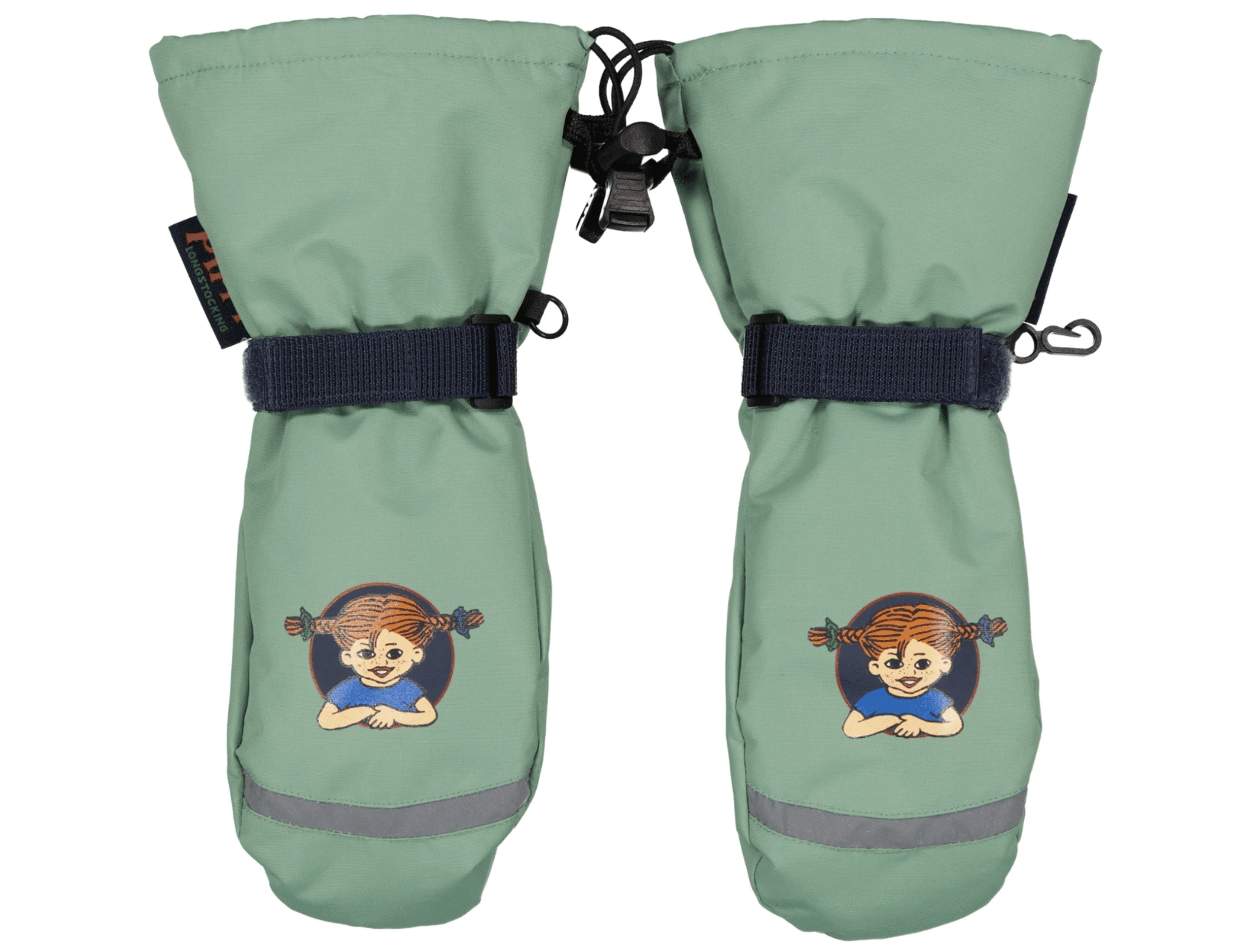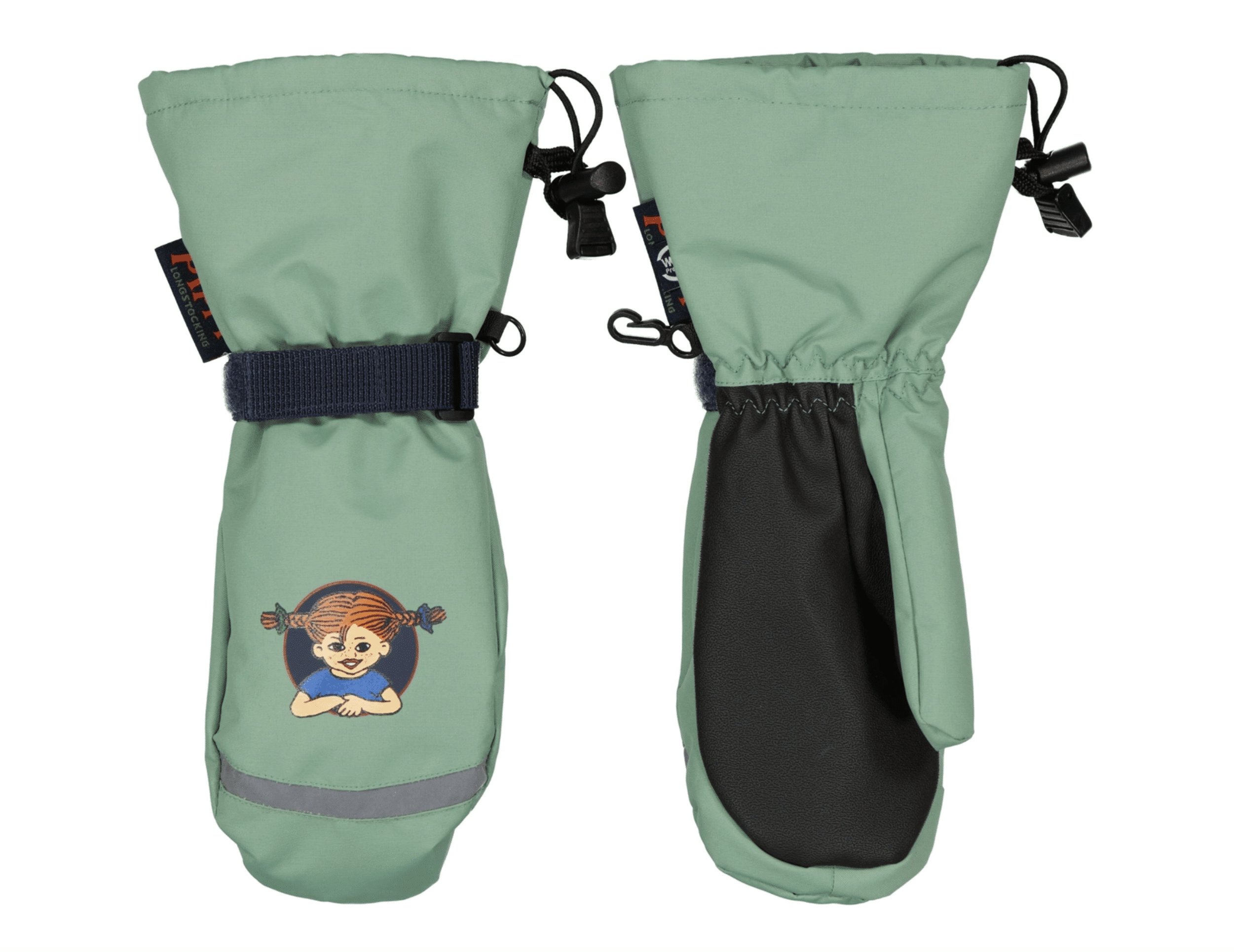 Vantarna har ett fint Pippi-märke som ger en extra dos styrka och bus, precis som världens starkaste tjej. Varma, bekväma och perfekta för att kasta snöbollar, bygga snögubbar eller bara hålla händerna härligt torra och gosiga.