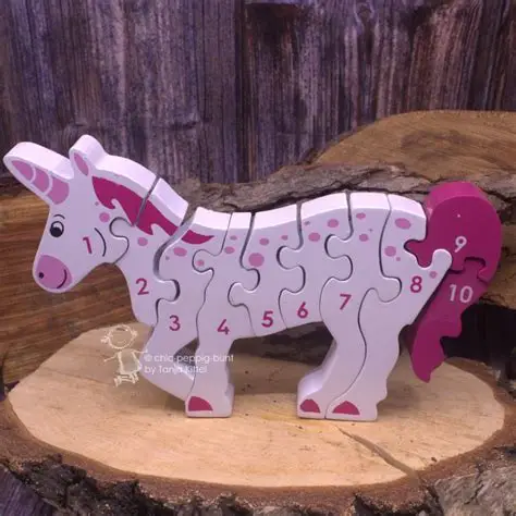 Låt barnet lära sig räkna samtidigt som de pusslar ihop en magisk enhörning! Detta färgglada träpussel med 10 numrerade bitar hjälper till att utveckla finmotorik och sifferförståelse på ett roligt och pedagogiskt sätt.