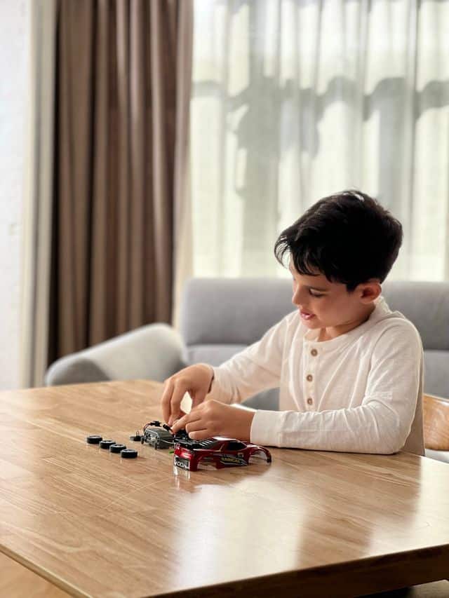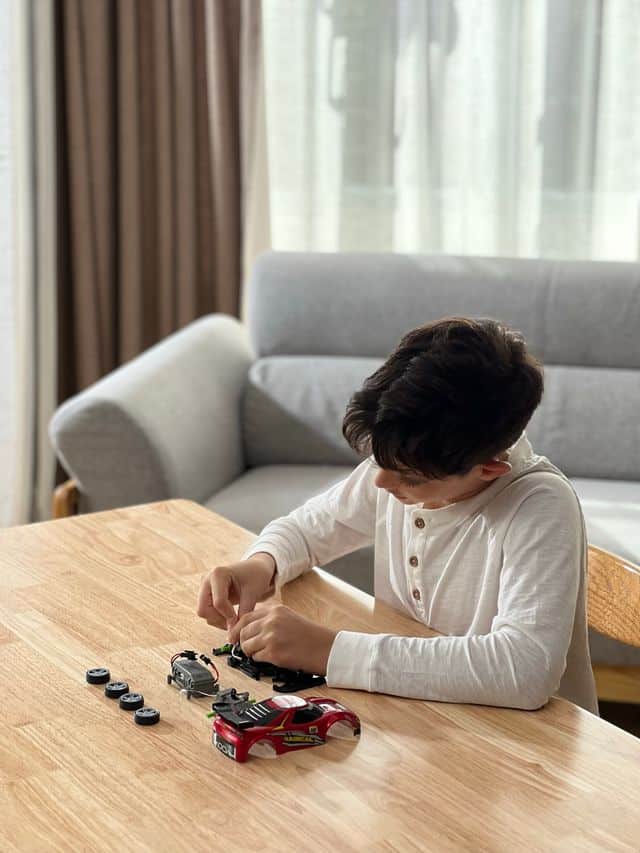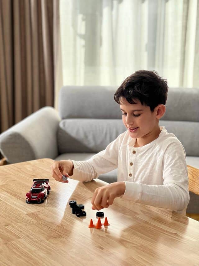 Att bygga bilen tränar kreativitet, logik och finmotorik, medan RC-körningen ger fartfylld action.